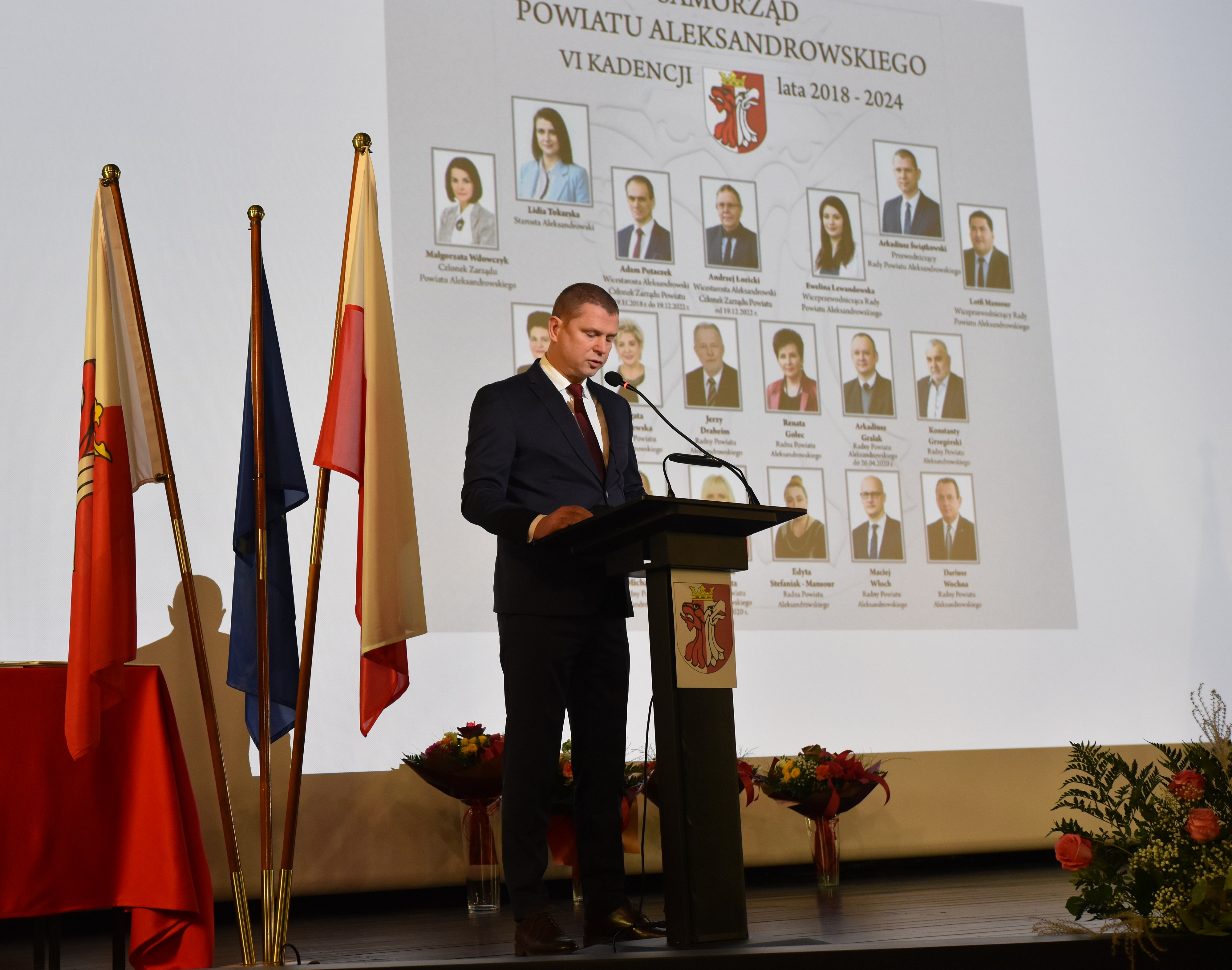 Następnie głos zabrał Arkadiusz Świątkowski - Przewodniczący Rady Powiatu Aleksandrowskiego - Spotykamy się na Jubileuszu 25-lecia istnienia naszego powiatu. 25 lat może wydawać się krótkim okresem, ale jeśli popatrzymy na ten okres z perspektywy istnienia powiatów jest to Jubileusz doniosły. Jak wspomniała Pani Starosta, w 1998 roku odbyły się pierwsze wybory do rad powiatów. Trzeba jednak przypomnieć, że proces reaktywacji powiatów rozpoczął się znacznie wcześniej, a spowodowany był oddolnym ruchem ówczesnych samorządowców, przedstawicieli organizacji pozarządowych oraz samych mieszkańców, którzy wywierając nacisk na rządzących, spowodowali powstanie dzisiejszej siatki administracyjnej samorządowych wspólnot powiatowych.